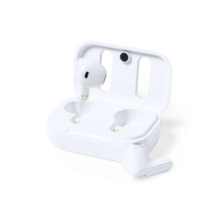 Cuffie in-ear Bluetooth®, realizzate in RABS in un elegante colore bianco, con il coperchio della base di ricarica rivestito in pelle riciclata.Connessione Bluetooth® 5.1, funzione vivavoce e batteria da 30 mAh. Design ergonomico, con pulsante di controllo a sfioramento integrato su ciascun auricolare e luce di stato di ricarica a LED. Base di ricarica abbinata con batteria da 300 mAh. Include un cavo di ricarica di tipo C e un manuale di istruzioni in inglese e spagnolo. Confezionate in una scatola kraft di design.Il materiale RABS o ABS riciclato e la pelle riciclata provengono dal riciclo di articoli giunti al termine del loro ciclo di vita. I materiali riciclati utilizzati hanno la certificazione RCS, che ne garantisce l'origine riciclata. (colore marrone)
