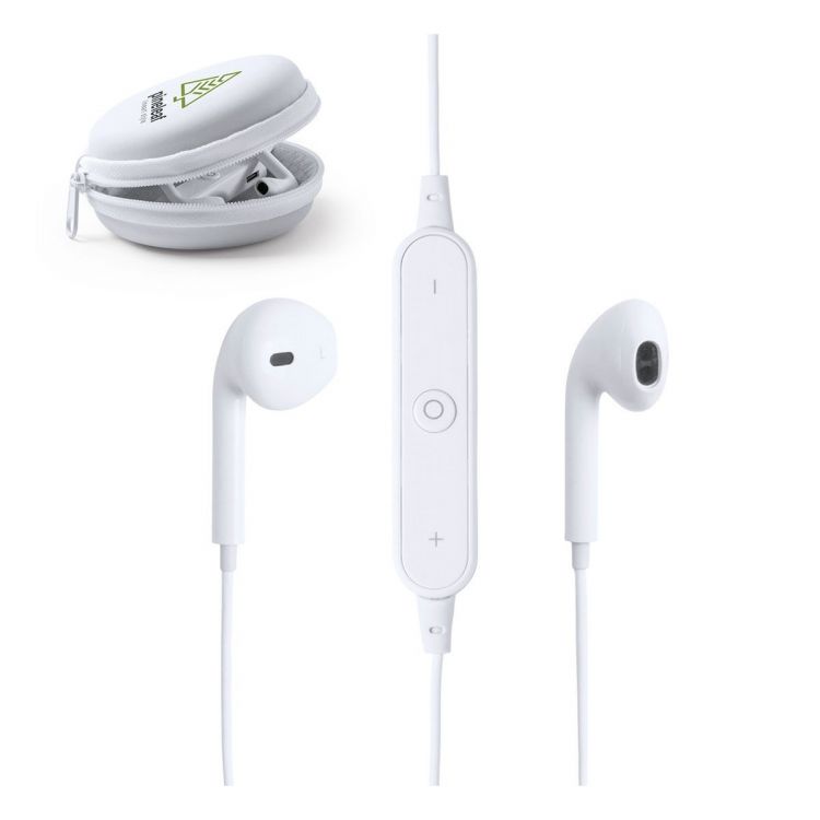 Cuffie in-ear con connessione bluetooth e design minimalista in un elegante colore bianco. Dal design ergonomico, includono un pannello di controllo integrato nel cavo e offrono la funzione vivavoce. Ricaricabili tramite cavo mini USB -incluso-. Presentate signolarmente in una robusta custodia in similpelle con chiusura a zip. (colore bianco)