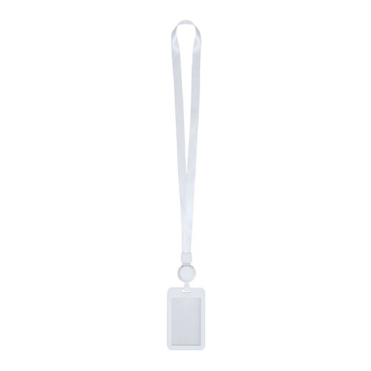 Identificatore di cordone estensibile. Portacarte ABS staccabile con posteriore opaco e parte anteriore traslucida con attacco a clip. Corda estensibile fino a 70 cm e cordino in poliestere bianco. (colore bianco)