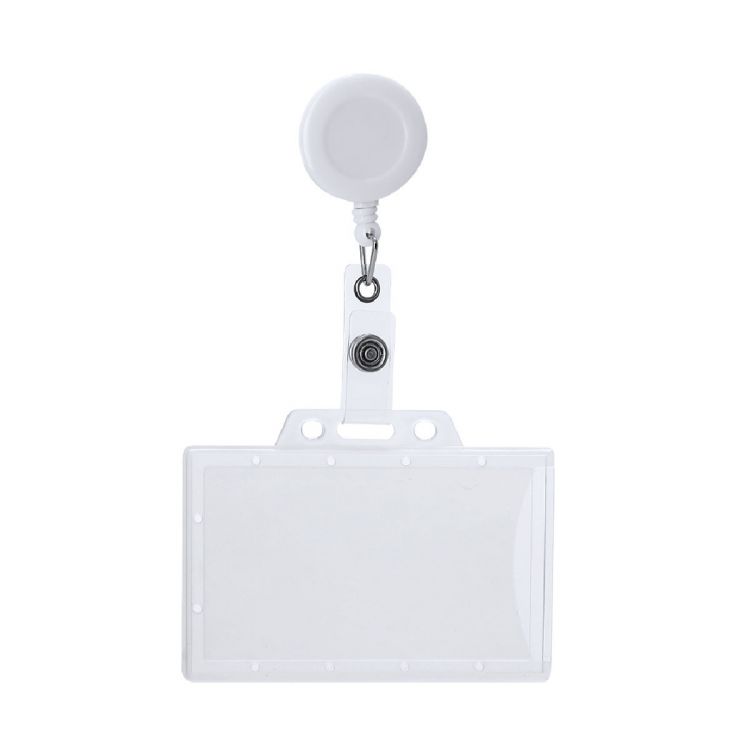 Identificatore di cordone estensibile. Portacarte rigido trasparente PS. Corda estensibile fino a 70 cm. (colore bianco)