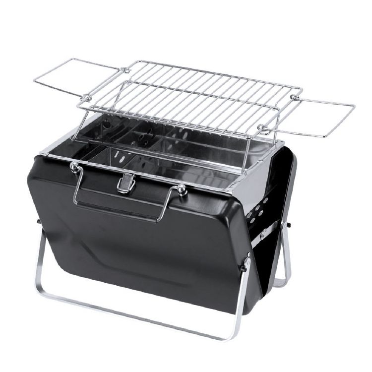 Barbecue pieghevole in acciaio inox con finitura opaca. Si piega in formato valigetta per facilitarne il trasporto. Ha una griglia pieghevole che rende l'uso più funzionale. Gambe di supporto antiscivolo pieghevoli che le conferiscono sicurezza e stabilità. Scelta ideale per attività all'aperto, eventi, pasti con amici o famiglia. (colore nero)