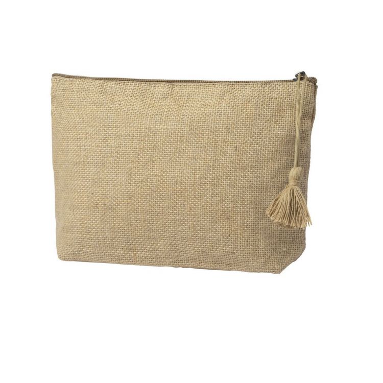 Borsa da toilette linea Nature in juta laminata, con chiusura a zip e manico in cotone super carino. (colore naturale)