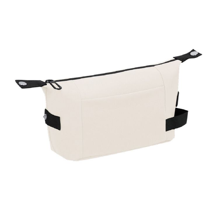 Una borsa da toilette fatta di PU morbida ed elegante. Con chiusura a zip e tiratore in metallo nero nel vano principale. Interno con fodera nera, inclusa tasca interna. Con manico laterale per un trasporto facile.