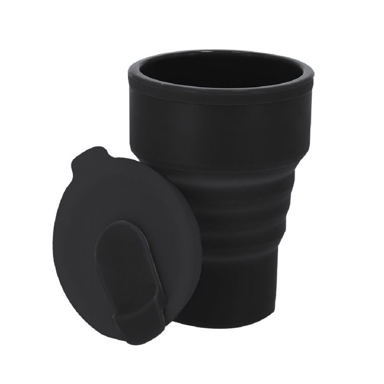 Tazza pieghevole con una capacità di 350 ml. Realizzato in silicone di alta qualità con tappo abbinato. Coperchio con ugello scorrevole. Con un corpo flessibile con finitura opaca, questo vetro può essere piegato per una conservazione comoda e facile. Senza BPA.