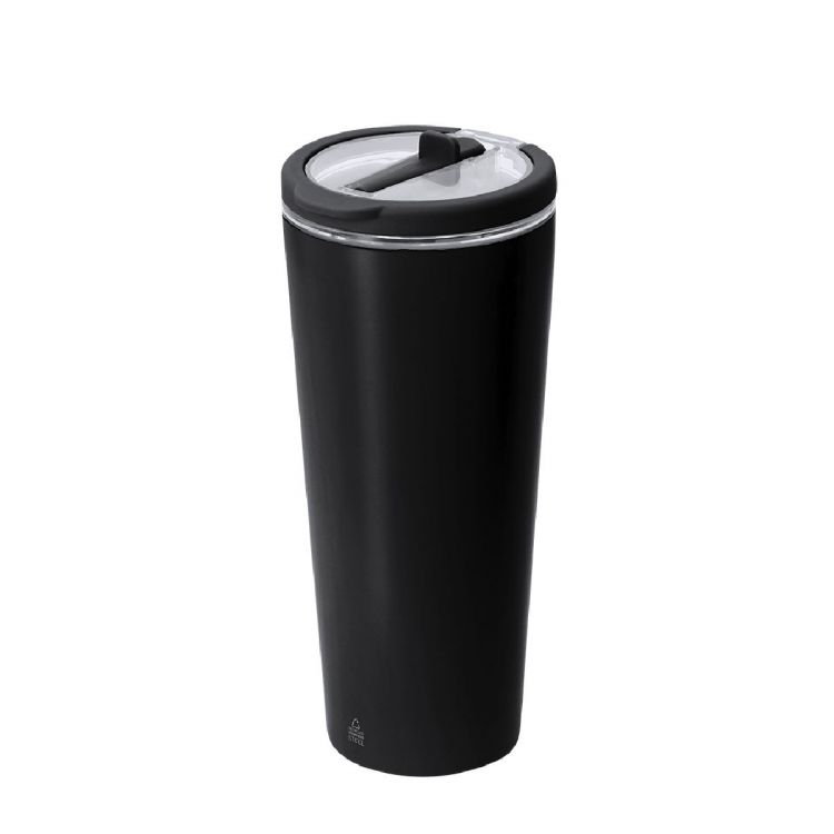 Elegante coppa termica in acciaio inox riciclato a doppia parete con una capacità di 700 ml. Finitura opaca, con tappo a vite trasparente e cannuccia abbinata. Senza BPA.
