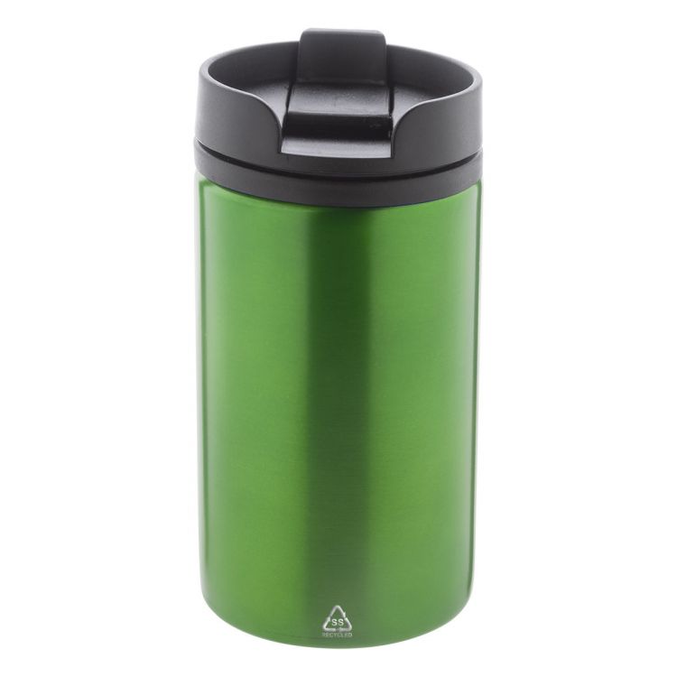 Bicchiere termico a doppia parete in acciaio riciclato da 250ml. con interno e coperchio erogatorein plastica PP.
