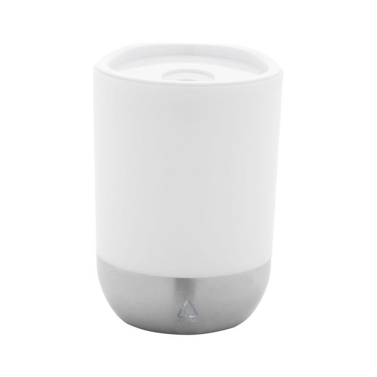 Bicchiere termico da 300ml. in plastica PP a doppia parete, con coperchio erogatore e base e in acciaio riciclato.