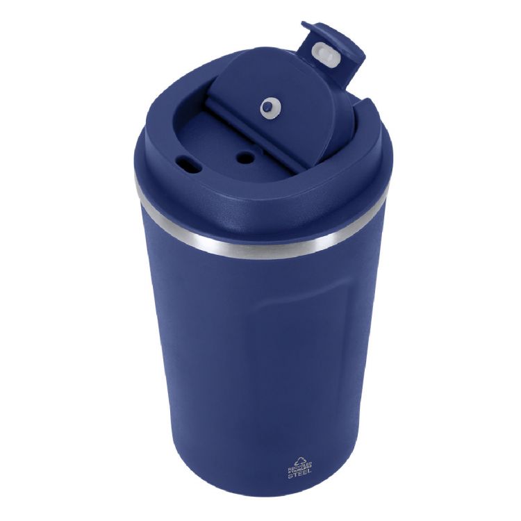Bicchiere termico con capacità di 400 ml, realizzato in Acciaio Inox Riciclato. Dotato di schermo touch sul coperchio che mostra la temperatura interna con un semplice tocco. Con tappo di sicurezza per una chiusura ermetica. Senza BPA. Include distintivo in acciaio inox riciclato. Alimentato a batteria. Non adatto al lavaggio in lavastoviglie.