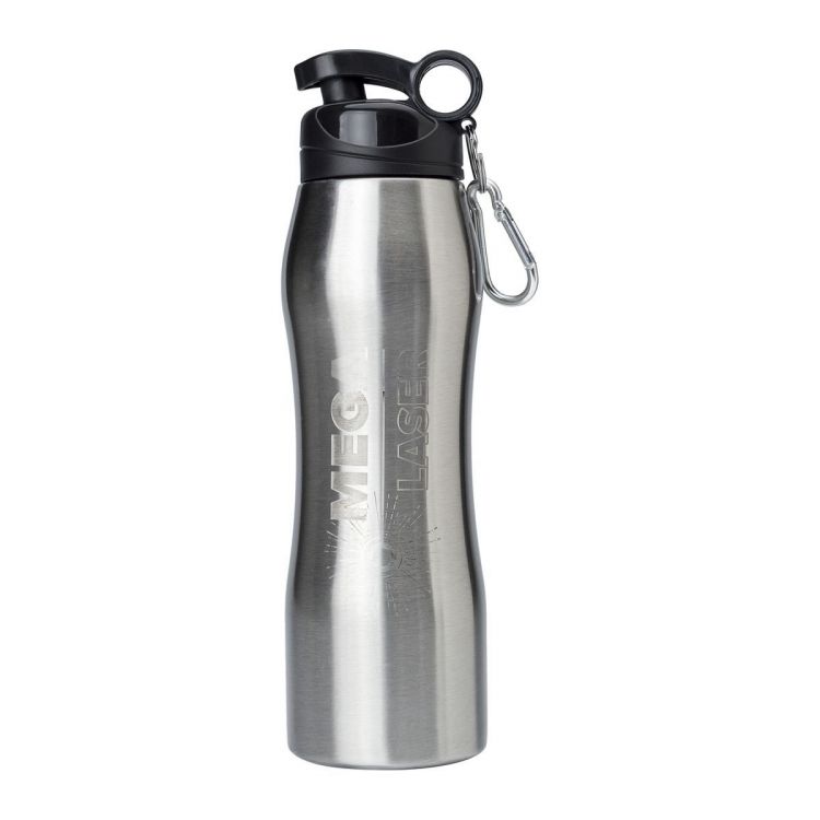 Borraccia sportiva in acciao inox, singola parete, con moschettone, capacità 750 ml