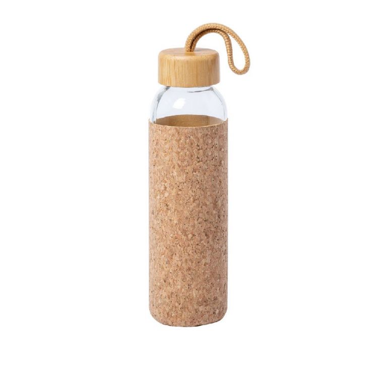 Borraccia da 500ml. in vetro, con rivestimento in sughero naturale e tappo in bambù. Non adatta per l'utilizzo con bevande gassate