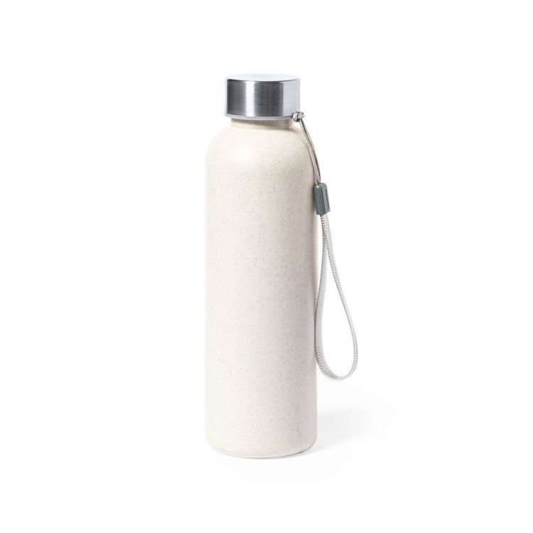 Borraccia in Pe venato senza BPA, capacità 600ml. Con tappo a vite in acciaio inossidabile e cinghia di trasporto. Certificazione Food Grade, che garantisce la sicurezza dell'articolo al contatto del cibo con il materiale utilizzato per la fabbricazione del prodotto. (colore naturale)