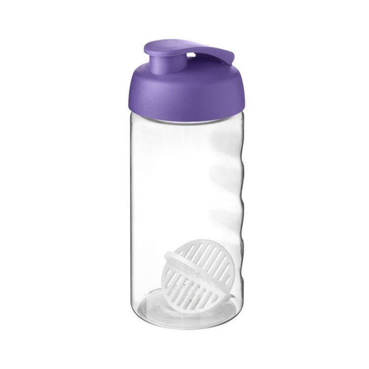 Borraccia sportiva a parete singola con sfera shaker per miscelare i frullati proteici. Coperchio ermetico con chiusura a flip. Design curvo. Capacità di 500 ml. Prodotto e confezionato in UK. Plastica PET e PP/PE