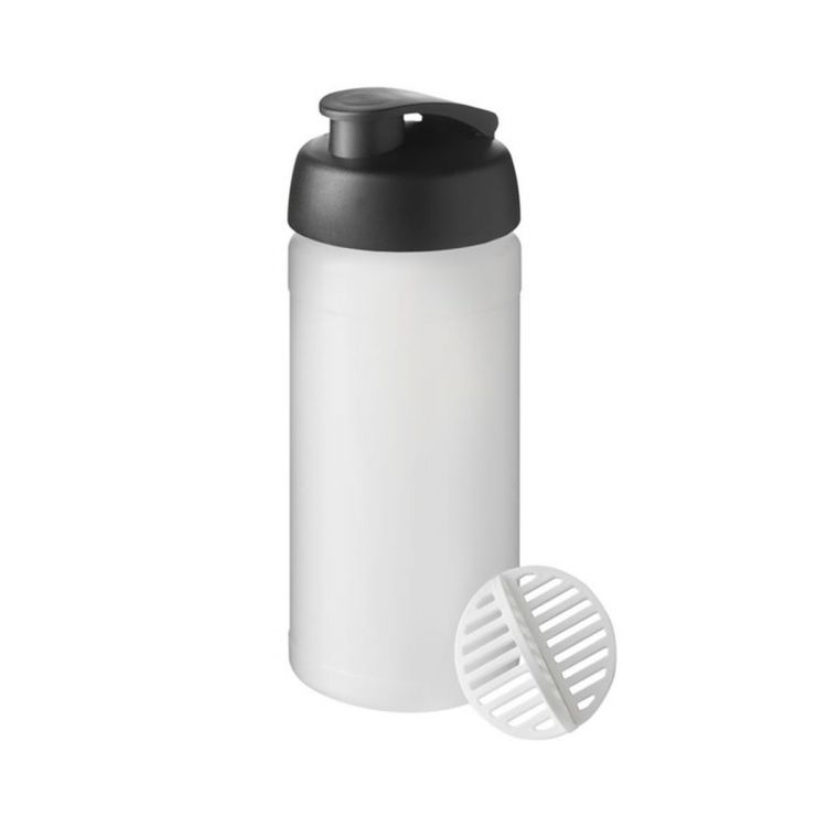 Borraccia sportiva a parete singola con sfera shaker per miscelare i frullati proteici. Coperchio ermetico con chiusura a flip. Capacità di 500 ml. Prodotto nel Regno Unito. Plastica HDPE, Plastica PP, Plastica PP.