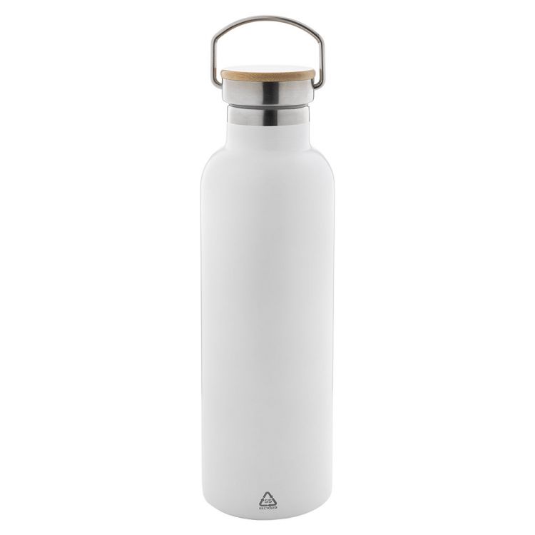 Borraccia termica con isolamento a doppia parete da 1000ml. in acciaio riciclato e coperchio in bambù.