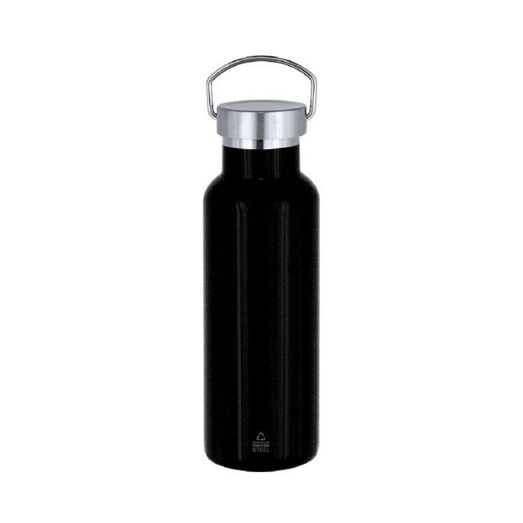 Borraccia termica realizzata in Acciaio Inox Riciclato a doppia parete, con capacità di 500 ml. Finitura in colori vivaci con effetto metallizzato. Tappo a vite con manico per il trasporto. Include distintivo in acciaio inox riciclato. Lacciaio è uno dei materiali più richiesti e si trova praticamente ovunque, dai prodotti di uso quotidiano alle grandi costruzioni. Con innumerevoli proprietà, tra cui spiccano la durata e lalto grado di riutilizzo, rappresenta unalternativa molto apprezzata nelle soluzioni di sostenibilità. Se adeguatamente trattato, consente di ottenere nuove risorse di utilizzo infinito.