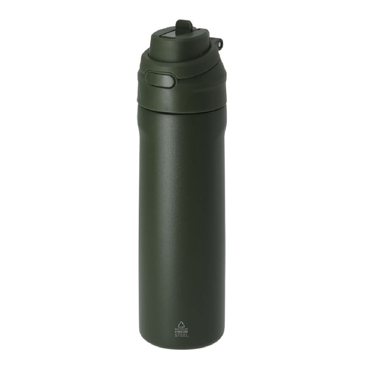 Bottiglia termica con capacità di 700 ml. Realizzata in acciaio inossidabile riciclato. Ha una doppia parete e due sistemi di bevuta: un foro con chiusura ermetica con apertura a spinta e una cannuccia integrata, adattabile alle preferenze d'uso. Con coperchio del sistema di sigillatura ermetica. Include una maniglia da trasporto integrata pratica, ideale per essere facilmente trasportata in qualsiasi situazione. Senza BPA. Con il distintivo in acciaio inox riciclato.