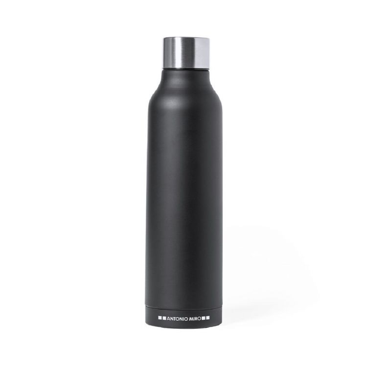 Thermos in acciaio inossidabile di Antonio Miró. Con una capacità di 500ml, a doppia paret, per una migliore e più durevole conservazione della temperatura. Con una sobria finitura nera satinata, logo Mirò sulla base e tappo a vite cromato. Confezionato in una scatola dal design attraente con il logo Mirò. (colore nero)