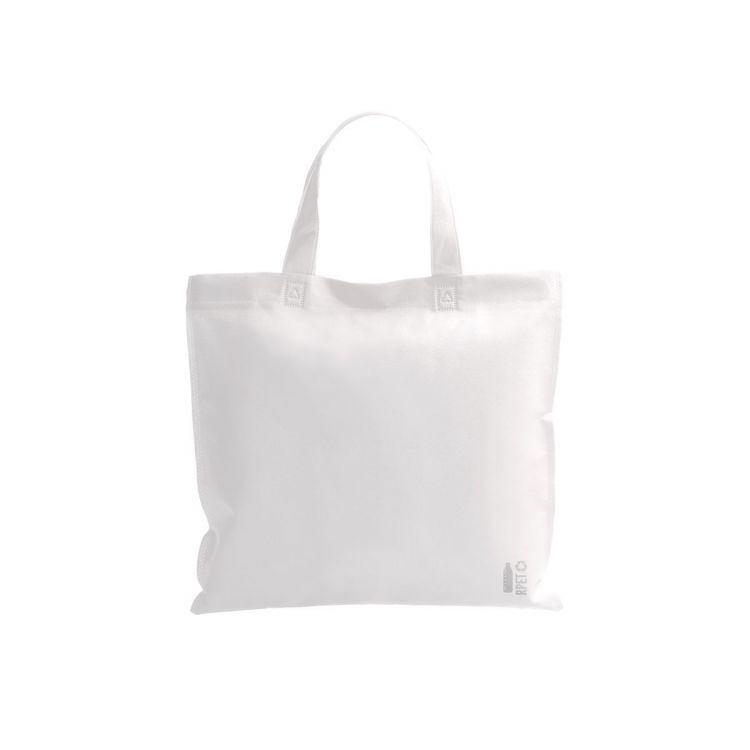 Borsa per la spesa in TNT RPET con manici mediamente lunghi, 70 g/m². Con etichetta RPET.