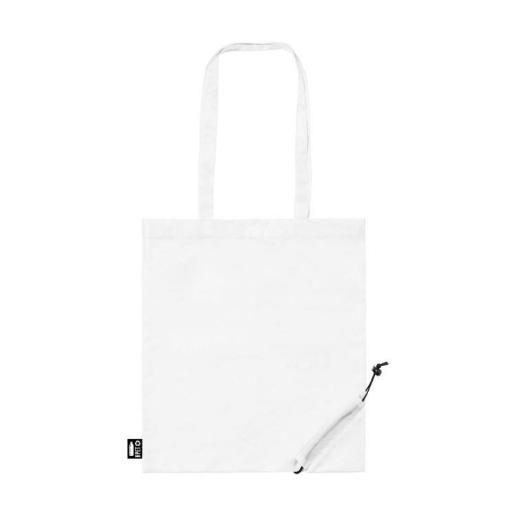 Shopper in poliestere RPET 190T ripiegabile con manici lunghi ed etichetta RPET.