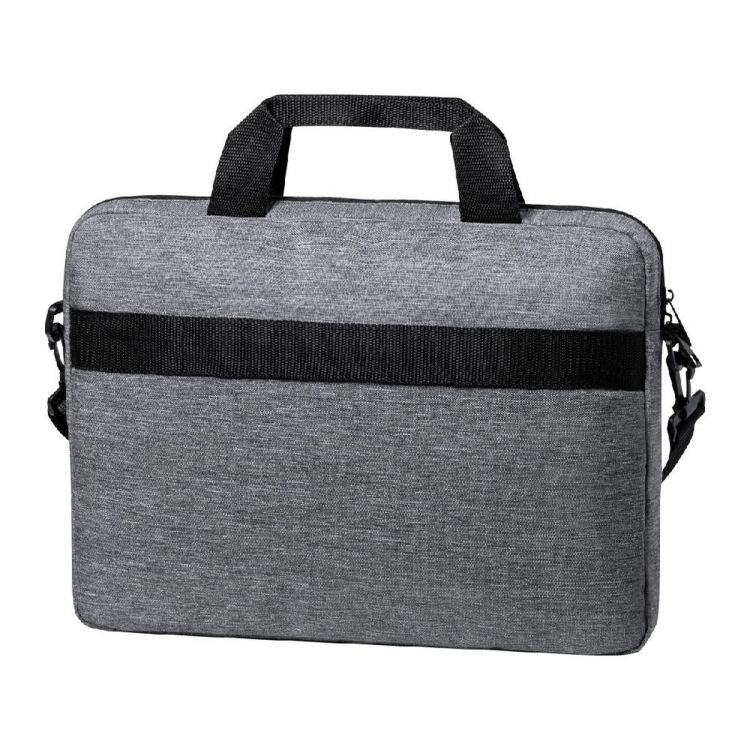 Borsa portadocumenti in poliestere 600D RPET con cerniera sulla tasca principale, tracolla regolabile, fascia trolley, scomparti imbottiti per laptop (15") e tablet (10"), in colore grigio