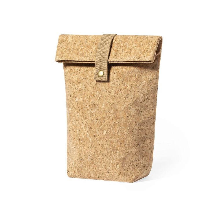 Borsa termica della linea Natura realizzata in sughero, per promuovere l'uso di materie prime naturali e contribuire alla sostenibilità del pianeta. Scomparto principale con striscia di cotone e chiusura a strappo, con interno in alluminio isotermico. (colore naturale)