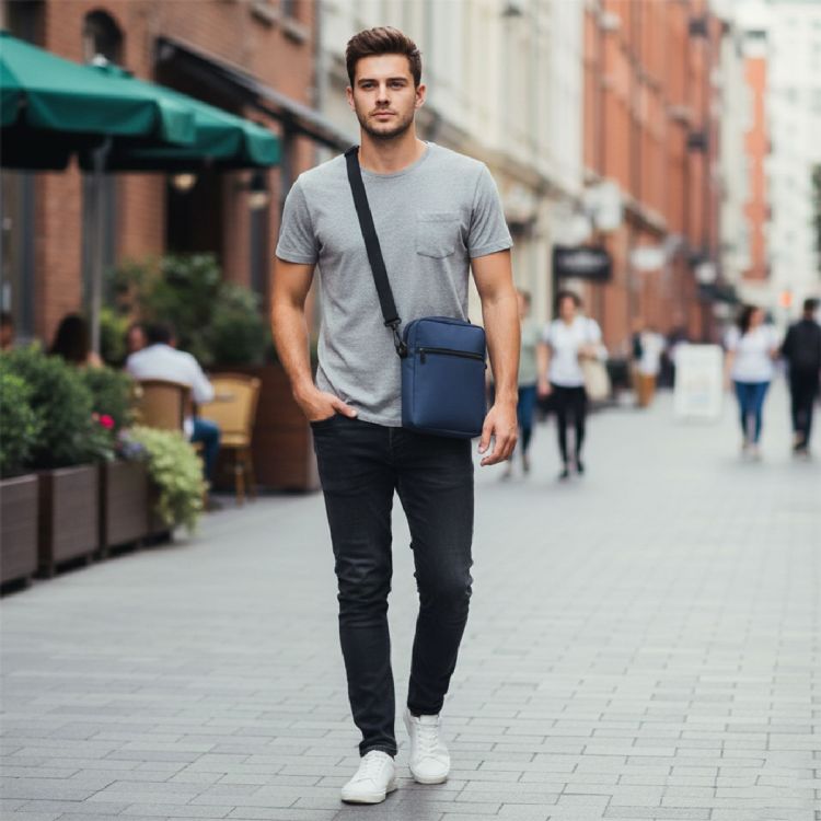 Borsa a tracolla, realizzata in PU morbido, che si distingueva per la tasca centrale con zip e uno scomparto anteriore con chiusura a zip. Indietro imbottito. Dotato di una cinghia regolabile per maggiore comfort con due moschettoni.