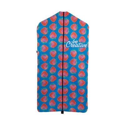Borsa porta abiti personalizzataCustodia per indumenti in poliestere RPET 190T con cerniera ed etichetta RPET. Personalizzazione con stampa in sublimazione su tutta la superficie. MOQ: 25 pezzi.