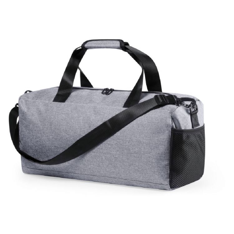 Borsa multiuso in resistente poliestere denim 600D e design casual bicolore, con un corpo grigio e dettagli neri. Scomparto principale con chiusura a zip e doppio pull, manici in nylon resistente con rinforzi e tasca a rete laterale. Con tracolla regolabile. (colore grigio)
