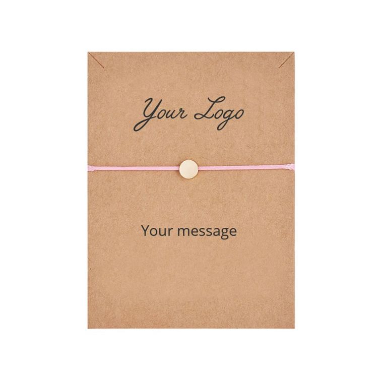 Braccialetto colorato in corda sottile e charm in metallo (nichel free). Il braccialetto viene fornito insieme ad un cartoncino riciclato personalizzabile da un lato con il proprio messaggio di comunicazione. Confezionato singolarmente in polybag trasparente.