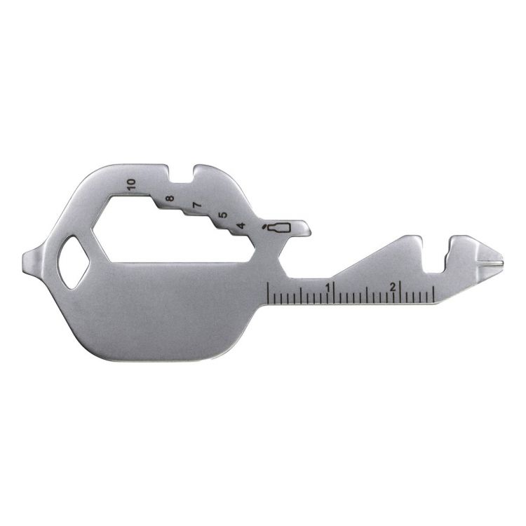 Il multi-tool Kee Shape, realizzato in resistente acciaio inox martensitico 2CR13, combina 12 utensili essenziali in un design compatto a forma di chiave per un facile aggancio a qualsiasi portachiavi. Include una chiave per raggi della bicicletta, chiavi inglesi (misure 4-10 mm), apribottiglie, cacciaviti a croce e piatti, piegafili e righelli sia in centimetri che in pollici. Confezionato in una elegante scatola regalo nera. E' un comodo utensile tutto in uno per le esigenze quotidiane, in colore argento
