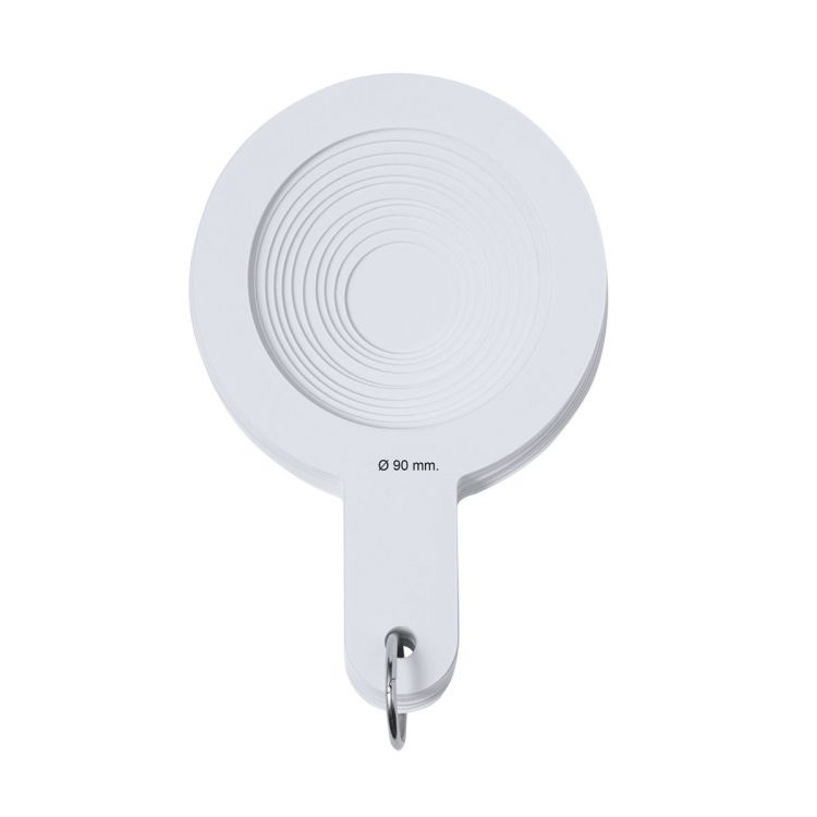 Calibratore manuale realizzato in resistente PP. Per diametri da 30mm a 90mm, perfetti per misurare e classificare in tempo reale e in base alle taglie. Dispone di 8 dime che aumentano gradualmente ogni 2 mm, una delle quali con una superficie piana per la marcatura. Uniti da un pratico anello di trasporto. (colore bianco)