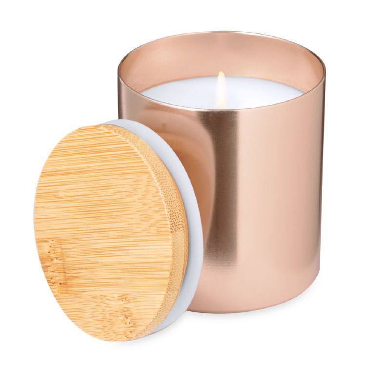 Candela profumata alla vaniglia. Presentata in un barattolo di metallo con coperchio di bambù. Barattolo disponibile in una gamma di colori con finitura metallica. Presentata singolarmente in una scatola kraft di design.Materiali come il bambù incoraggiano l'uso di materie prime naturali, riducendo le emissioni inquinanti. Proviene da una pianta altamente resistente e versatile, con una crescita e una rigenerazione rapida, rappresentando un'ottima alternativa all'uso del legno tradizionale