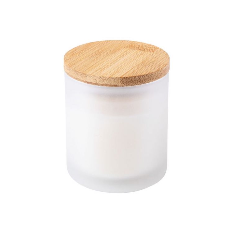 Candela profumata alla vaniglia in vaso di vetro con coperchio in bambù, in colore bianco