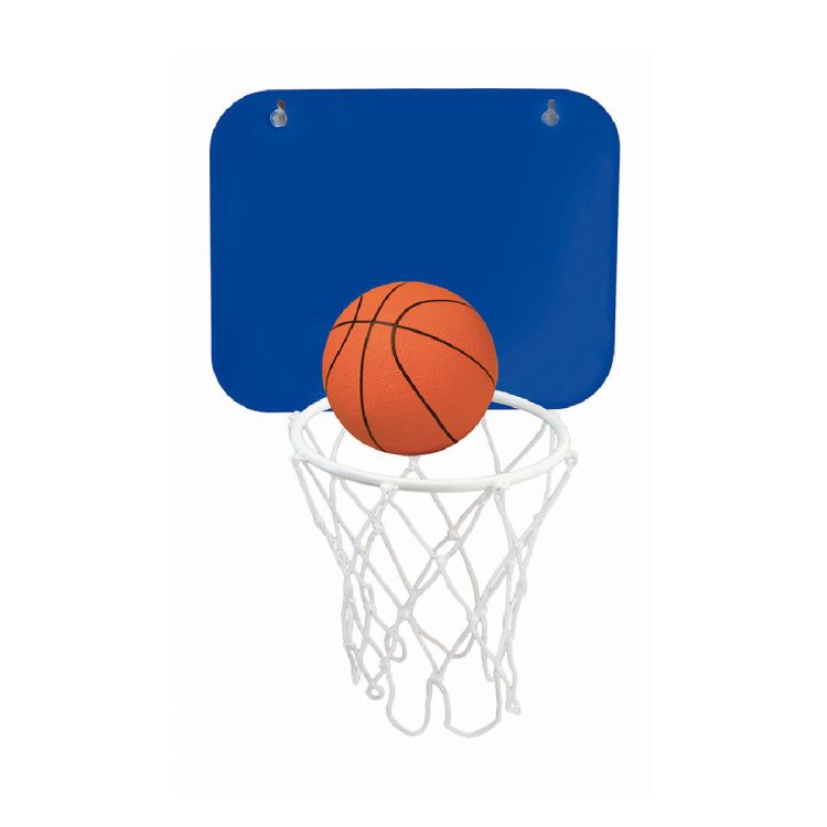 Cestino in PVC con tabellone in colori vivaci. Con pallone da minibasket incluso e ventose sul retro per il fissaggio.