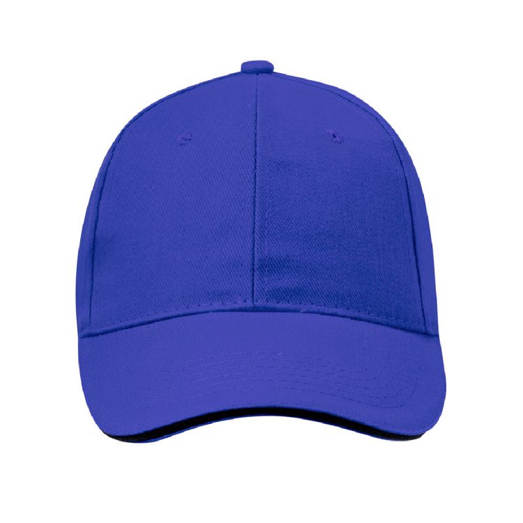 Cappellino a 6 pannelli in cotone pettinato. In una gamma di colori vivaci, con sandwich colorato e visiera trapuntata. Fori di ventilazione ricamati e chiusura regolabile con velcro.