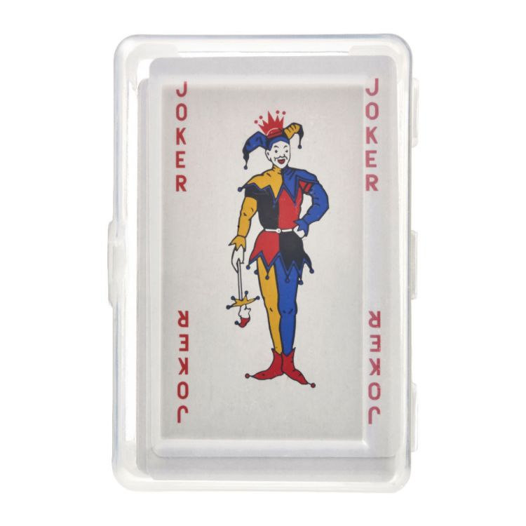 Carte da gioco composto da 54 carte, in custodia PET trasparente, in colore rosso