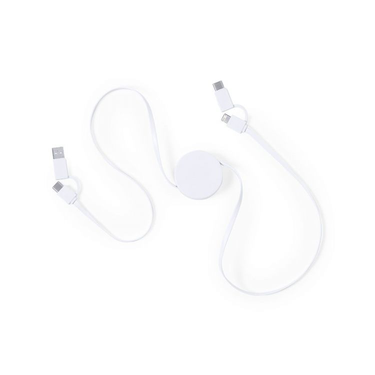 Caricatore estensibile dal design ultra compatto. Tipo C (ingresso e uscita) e doppia connessione Micro USB/Lightning. Caricatore e funzione di trasferimento dati. Grande superficie di stampa a disposizione. Confezionato in un sacchetto individuale. (colore naturale)