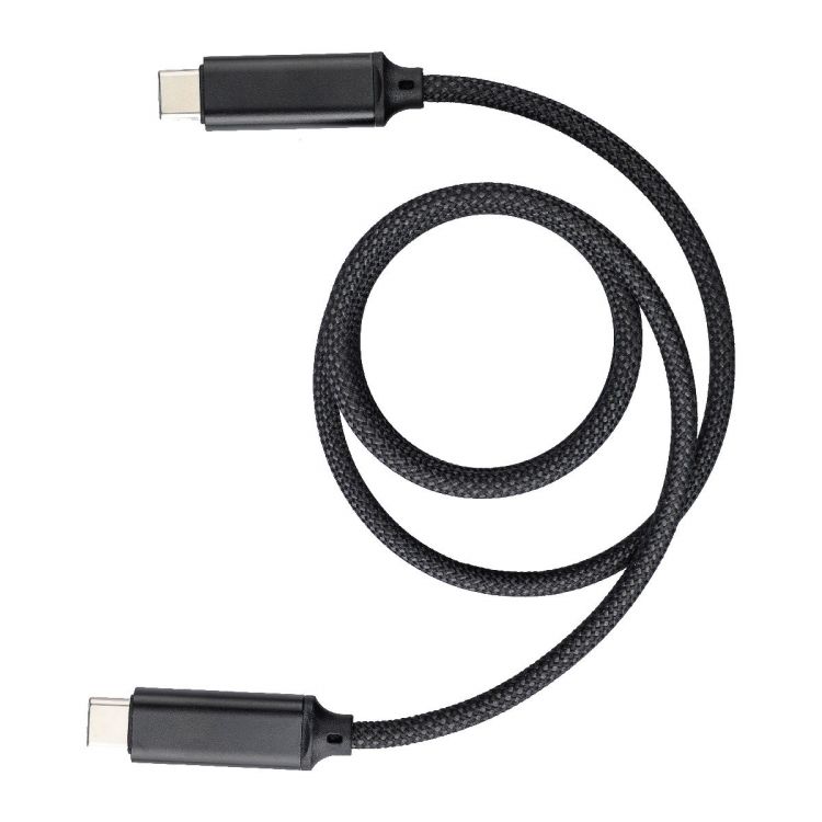 Cavo per la ricarica e trasferimento dati in nylon, capacità 60 W, il magnete integrato consente al cavo di arrotolarsi automaticamente in modo strutturato, uscite entrambe in USB-C, velocità di trasferimento dati di 240 Mbps, lunghezza del cavo circa 100 cm, confezionato singolarmente in una scatola in cartone avana, in colore nero