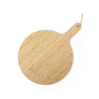 Tagliere rotondo in bambùTagliere in bambù con manico, molto versatile ed ideale per la pizza. Fornito in confezione regalo in carta kraft. Poiché il prodotto è realizzato con materiali naturali, il colore del prodotto e il risultato della stampa possono variare da un prodotto all'altro. Prodotto in colore naturale