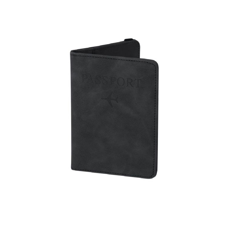Custodia per passaporto dal design elegante realizzata in PU Riciclato al tatto morbido. Interno con più tasche per conservare carte, passaporto e documenti. Con sistema di protezione RFID e nastro elastico di chiusura. Con logo di PU Riciclato sul retro.Il PU Riciclato si distingue per la sua resistenza e elasticità. Questo materiale riciclato e riciclabile è un'opzione sostenibile che recupera le fibre scartate nei processi di produzione, minimizzando così lo spreco di materiale e contribuendo a ridurre l'impatto ambientale, mantenendo al contempo le sue proprietà originali.