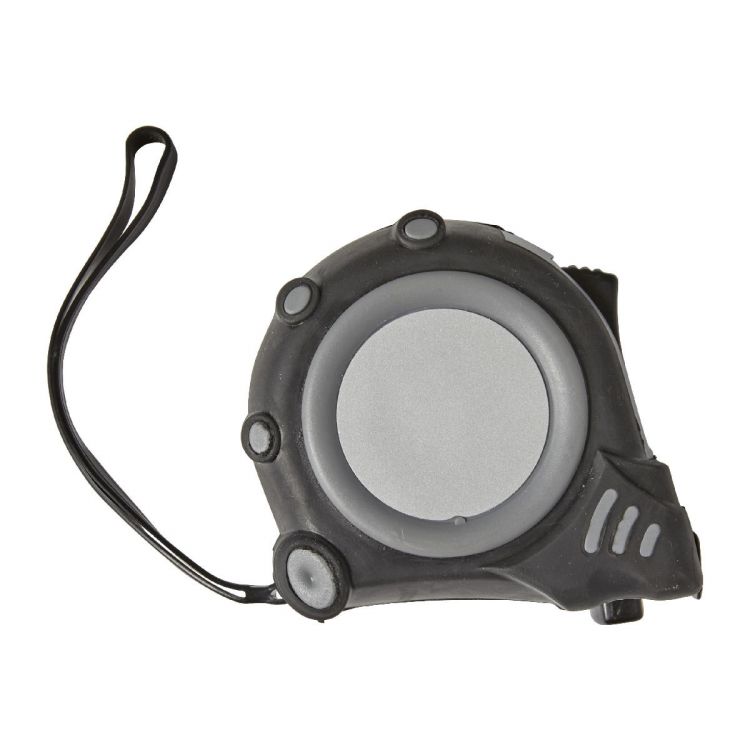 Flessometro 5 metri con bottone d'arresto, clip per cintura, cinturino da polso, in ABS. Sistema metrico in centimetri e pollici, in colore nero