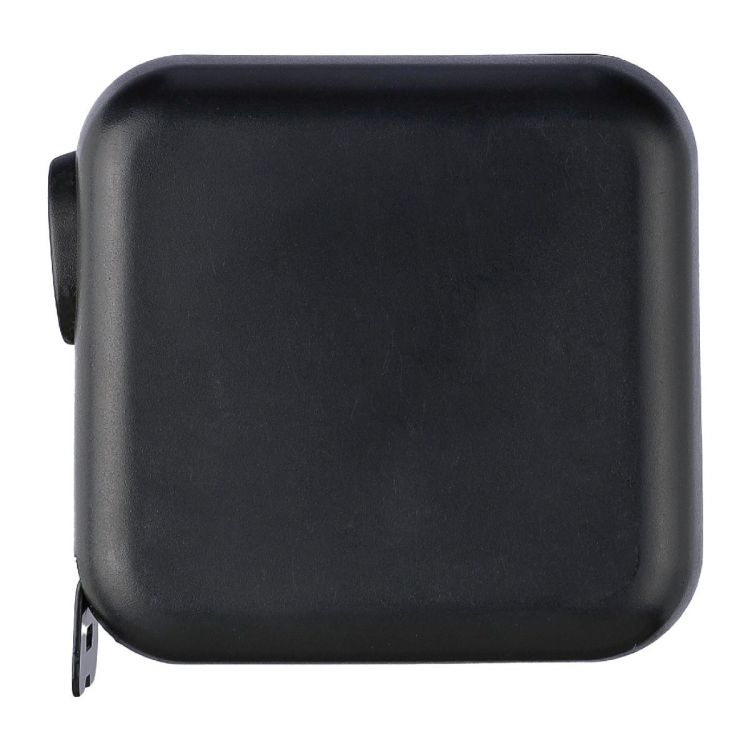 Flessometro in ABS da 5 metri, nastro in metallo (19 mm) con scala in centimetri e pollici, assemblato a ultrasuoni (senza viti), include pulsante con blocco, confezionato singolarmente in una scatola in cartone avana. Sistema metrico in centimetri e in pollici, in colore nero