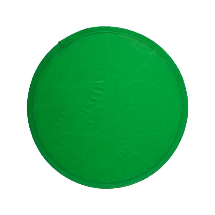 Frisbee pieghevole in nylon con custodia. Sia la superficie del frisbee che del sacchetto possono essere stampate.