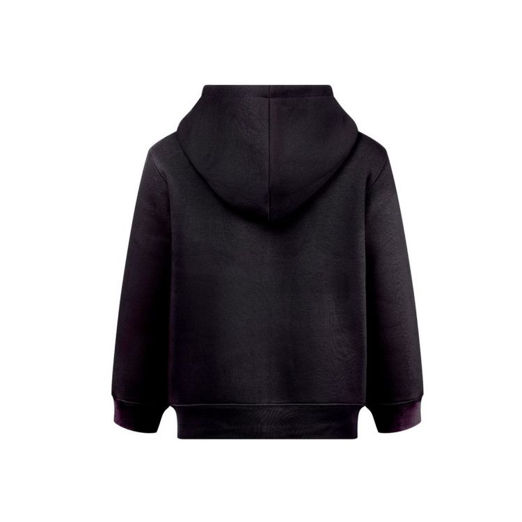 Giacca per bambini in spugna americana trattata con enzimi (50% cotone con pratiche agricole sostenibili) e 50% poliestere riciclato (320 g/m²). Cappuccio senza coulisse e foderato in jersey dello stesso colore della giacca, conforme alle norme di sicurezza dell'Unione Europea. Presenta polsini e fondo a costine 1x1, 2 tasche laterali, chiusura con zip, tiretto e interno cardato