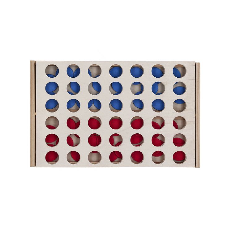 Gioco del 4 in fila in legno. Perfetto da godere in qualsiasi momento, a casa o all’aperto, con amici, famiglia o durante eventi. Include 42 pedine, 21 blu e 21 rosse. Facile da montare e smontare, con scomparto per riporre le pedine. Un gioco che unisce divertimento ed estetica. (colore naturale)