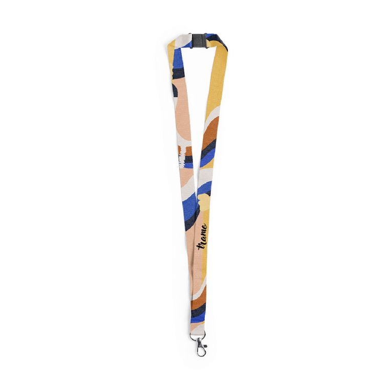 Lanyard in resistente poliestere, con attacco di sicurezza al collo e moschettone in metallo. Disponibile in una gamma di colori vivaci.