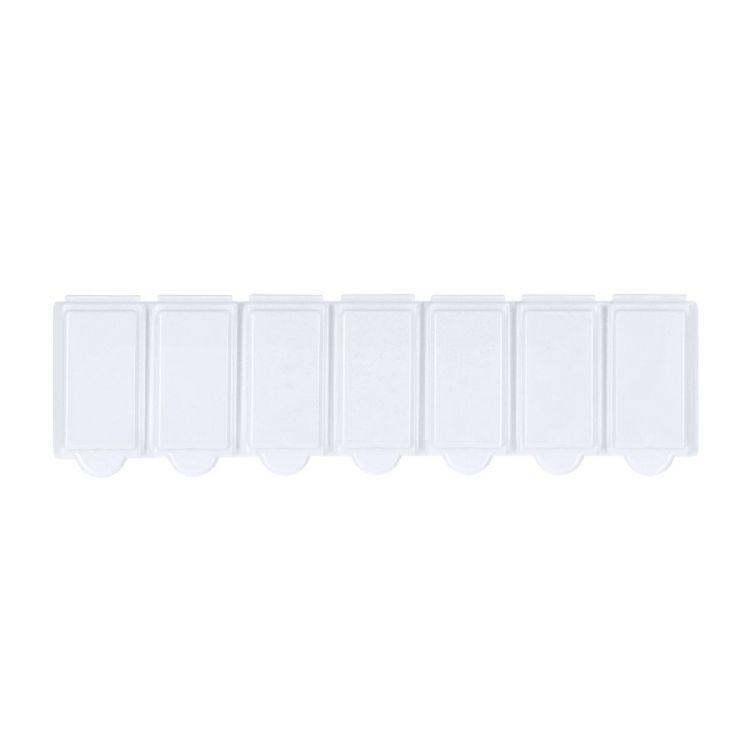 Dispenser settimanale in resistente materiale PP di finitura bianca solida. Include 7 scomparti individuali con chiusura di sicurezza. Senza BPA. (colore bianco)