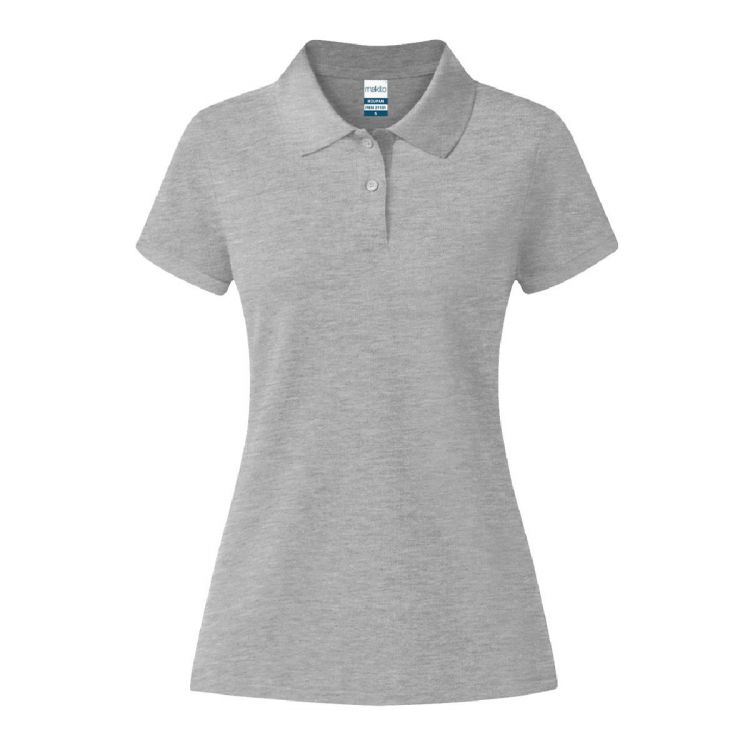 Polo da donna a maniche corte. Realizzata in piqué di cotone pettinato Ring Spun al 100% da 220 g/m2. Morbido al tatto e dal taglio moderno, con aperture laterali nella parte inferiore e disponibile in un'ampia gamma di colori. Abbottonatura a due bottoni, con doppie cuciture sul fondo e sulle maniche, per una maggiore durata e resistenza all'uso intensivo. Etichetta facilmente rimovibile. Disponibile nelle taglie S, M, L, XL e XXL.
