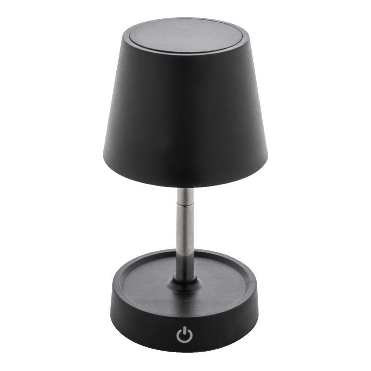 Lampada da tavolo telescopica in ABS riciclato con 12 LED, luminosità regolabile e batteria ricaricabile USB da 1200 mAh. Include cavo di ricarica USB.