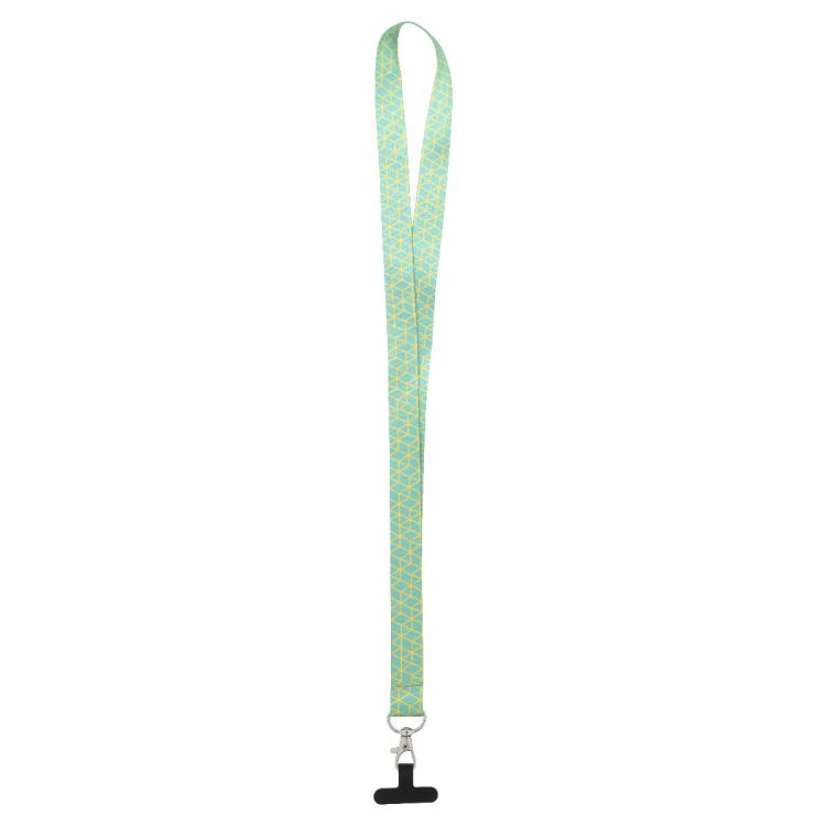 Lanyard portacellulare in RPET, con moschettone in metallo ed inserto per telefono in carta antistrappo. Personalizzabile con grafica stampata in sublimazione su entrambi i lati. MOQ: 100 pezzi.